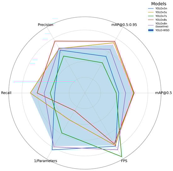 Ultimately, YOLO-WSD significantly enhances performance while keeping the parameters and inference speed on par with YOLOv8n. Thus, the study concludes that the proposed model is superior.