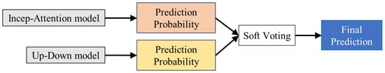 In addition, the third model is an ensemble result created by selecting the combination with the best training accuracy from various pairings of the two mentioned models. Instead of using a meta-learner, a simple soft voting method is employed to combine the prediction results of the two models. The ensemble model can be efficient if the combined models have distinct yet complementary characters, allowing for a more comprehensive understanding of a board game situation. Our experimental results show that the forecasting performances of the combined results from the Incep–Attention and Up–Down models are usually superior to that of either model alone.