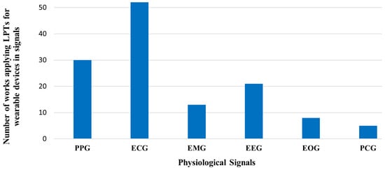 Distribution of LPTs applied to bio-signals in wearable medical devices based on the analysed works.