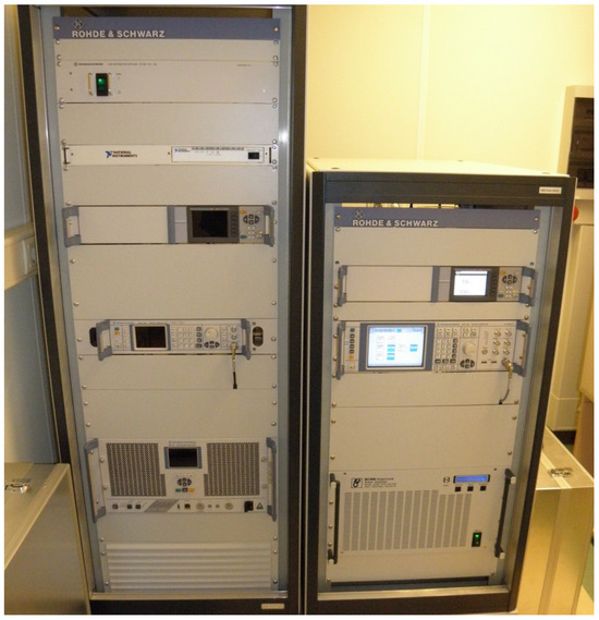 View of the systems (EMS_1GHz and EMS_6GHz) by Rohde & Schwarz for the generation of electromagnetic fields at the required intensities and frequencies during operation.