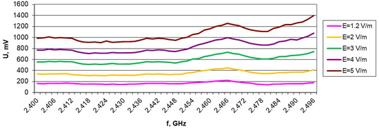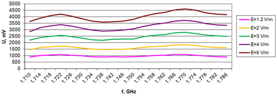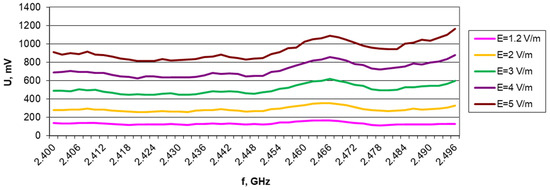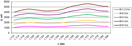 The results of the measurements for the individual bands (at different loads and selected field strengths) are presented in Figure 7, Figure 8, Figure 9, Figure 10, Figure 11, Figure 12, Figure 13, Figure 14, Figure 15, Figure 16, Figure 17, Figure 18, Figure 19, Figure 20, Figure 21, Figure 22, Figure 23 and Figure 24.