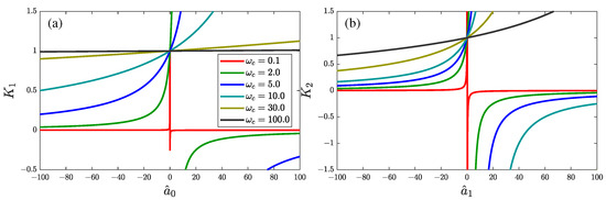 Hence, the parameters also depend on the coefficients of the system. The influence of the values of the model parameters on the change in the gains was investigated for different values of the controller and the ESO bandwidth. For constant bandwidth, there are rational functions