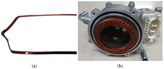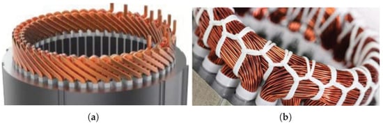 - Ishigami, T.; Tanaka, Y.; Homma, H. Motor Stator with Thick Rectangular Wire Lap Winding for HEVs. IEEE Trans. Ind. Appl. 2015, 51, 2917–2923. [Google Scholar] [CrossRef]