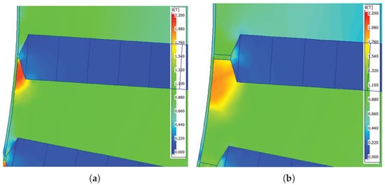As shown in Figure 18, by comparing the magnetic density under the four tooth-tip shapes, it can be found that the tooth-tip parameters have a great influence on the magnetic circuit of the tooth crown. The larger the tooth-tip height, the farther the distance from the permanent magnet, the smaller the magnetic density and the smaller the loss of the winding affected by the permanent magnet.