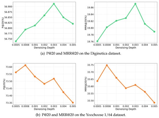 Figure 4, it was evident that excessively large or too low denoising depths did not yield optimal performance. The optimal performance points differed notably between the two datasets. This indicates that each dataset contains a certain level of noisy data, with the degree of noise varying between them.