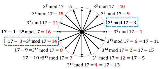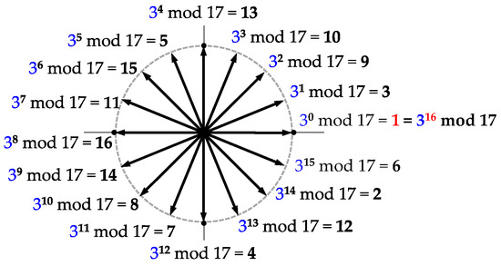 Figure 1, every non-zero number from 1 to 16 can be expressed as a power of 3 modulo 17.