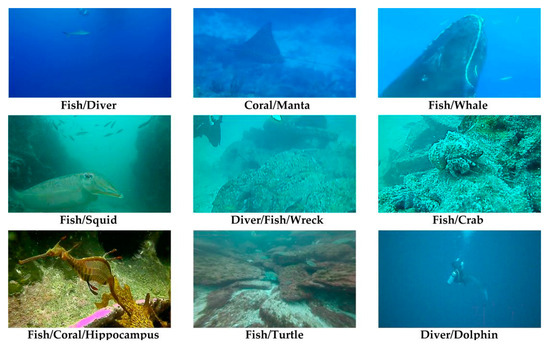Given the scarcity of multi-label classification datasets for underwater micro-videos [22], this paper combines the UOT100 dataset and relevant underwater content from the MLSV2018 dataset; by processing and relabeling these micro-videos, an underwater micro-video multi-label classification dataset (UVMCD) was established, as shown in Figure 4. The MLSV2018 dataset accessed on 20 January 2024 at the following URL: https://github.com/tjufan/challengerai-mlsv2018. All the experiments described in this paper were conducted on the UVMCD, a large-scale multi-label classification dataset for micro-video, in order to verify BGCLN.