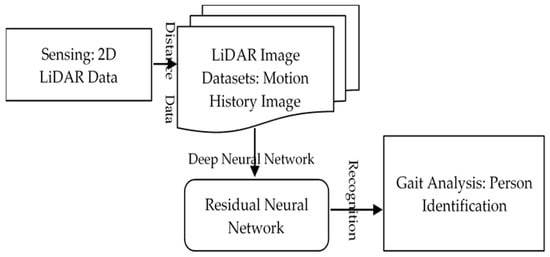 Figure 1 displays a block diagram that provides a concise overview of the system. The sensing module gathers data from the LiDAR sensor and uses this information to generate motion history images. The figure shows the input datasets we have. The person’s property was estimated using a residual neural network with the help of these image datasets [11]. This study used a tracking system [9] based on the modified density-based clustering methods EDBSCAN and EOPTICS [10], together with a property estimation technique. The recognition system can now identify individuals using gait analysis.