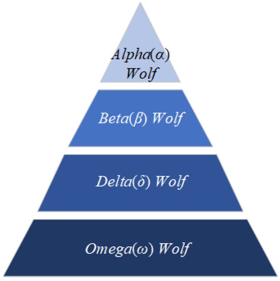 The GWO algorithm is founded on a fundamental mathematical framework that mirrors the social hierarchy observed in grey wolf populations. By emulating the hunting behaviors and population dynamics of grey wolves, it aims to achieve optimization objectives. The hierarchical structure is illustrated in Figure 2, with the roles and responsibilities of wolves at each level outlined in Table 2.