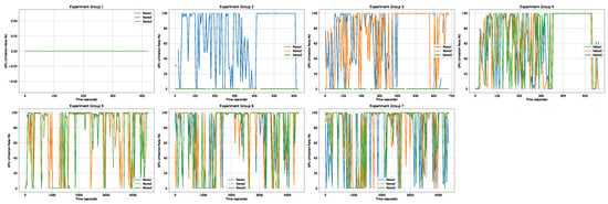 As shown in Figure 5, Jetson Nano clients without thermal stress typically exhibit very low GPU utilization rates, with only occasional short periods of utilization rate peaks. However, clients under thermal stress tend to experience fluctuations in their GPU utilization rates, but for the most part, the utilization rate remains high.
