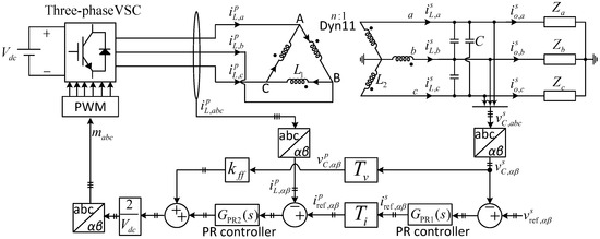 which is identical to (7). Therefore, the simplified small-signal model depicted in Figure 6c is also valid for the transformer vector group Dyn1.