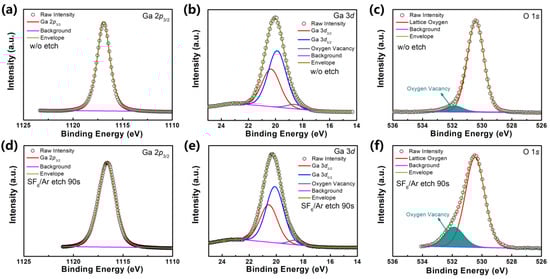 - Liang, H.; Chen, Y.; Xia, X.; Zhang, C.; Shen, R.; Liu, Y.; Luo, Y.; Du, G. A Preliminary Study of SF6 Based Inductively Coupled Plasma Etching Techniques for Beta Gallium Trioxide Thin Film. Mater. Sci. Semicond. Process. 2015, 39, 582–586. [Google Scholar] [CrossRef]