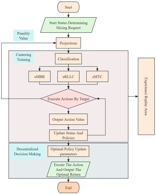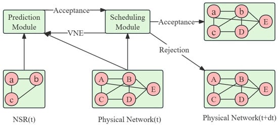 In our model, a fundamental key assumption is that traffic requests follow a cyclical pattern, which is essential for applying time series forecasting algorithms. Based on the assumed periodicity, traffic forecasting is conducted based on an observed time window  and is represented by a vector, , . Then, we fix a future time window  that provides the predicted traffic for the time period , , , through a forecast function . As the observed time window  extends and more information is collected, the accuracy of traffic predictions for each user’s slice in the future time window  increases.