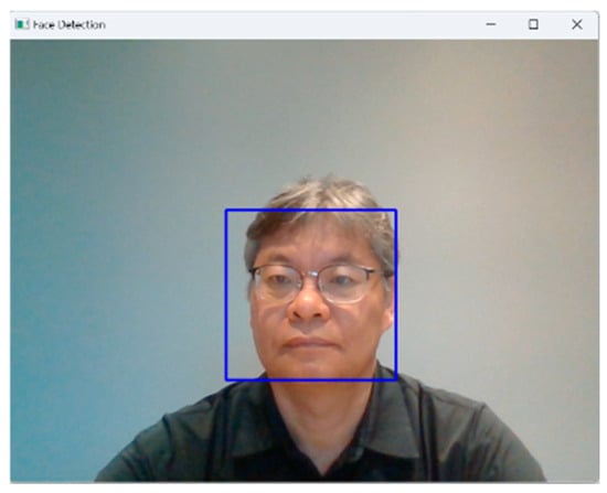 The experiment used OpenCV for face recognition, and the experiment equipment is listed in Table 1. The method for detecting a human face in real time is to capture the video, create an image file, and use the image to check whether a human face exists through a face detection algorithm (Figure 7). This is repeated continuously while the camera records video. The face detection algorithm uses the Haar feature [23,24]. Haar feature is a method of dividing a video/image into several regions and then obtaining the characteristics of the object through the difference in brightness between each region. Since there are parts of the human face that are significantly different from the surrounding parts, such as hair, eyebrows, eyes, and lips, this method is fully effective. However, this method causes errors in facial recognition if part of the face is covered, so all residents must reveal their entire face.