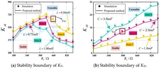 To verify the validity of the proposed method for determining the stability boundary of the circuit component L in the Vienna rectifier under the multi-parameter variation, this paper examines the variation in parameters C and . It is worth noting that for the sake of clear visualization, only the variation in the two-dimensional parameters is shown.