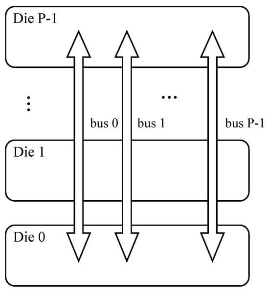 Iterative advancements in multi-die technologies may necessitate designs featuring multiple dies, emphasizing the structure’s scalability. As shown in Figure 5, the proposed architecture adopts a unified interface design. Each die can be considered an independent module, with external interfaces consisting only of I/O ports and a southbound data bus and a northbound data bus. The scalability of the architecture accommodates any number of dies, achieved through the sequential connection of multiple single-die structures, thereby forming a high-performance network-on-chip (NoC) architecture [28].