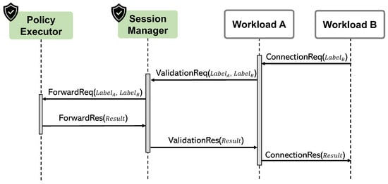 Among the various practices for implementing zero trust, a service mesh-based framework is the most common approach due to its simplicity and popularity [2]. The service mesh approach uses a sidecar proxy for each workload, and the workload’s networking tasks are delegated to the proxy. A sidecar proxy is an essential element in building zero trust because it performs authentication and authorization on each workload’s request for system resources according to access control policies [3,4,5].