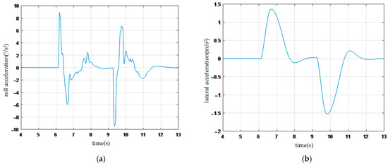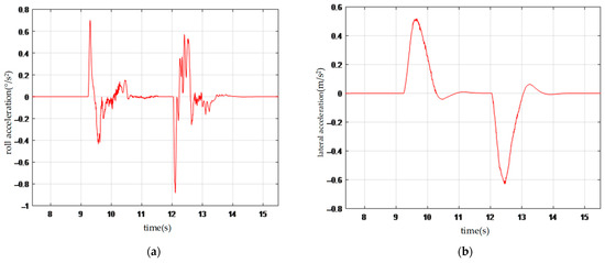 Vehicle dynamics parameters: (a) roll acceleration; (b) lateral acceleration.