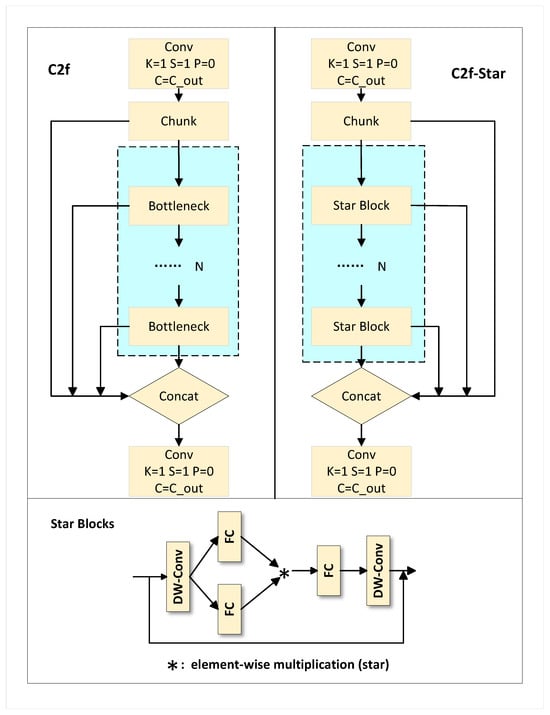 - The C2f module of YOLOv8n is improved by replacing its bottleneck structure with the Star Block, forming the C2f-Star module. This improvement not only increases the detection precision, but also optimizes the operational efficiency of the model.