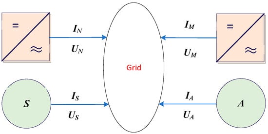 If the DC system’s transmission power is 0, i.e., , according to Formula (1), the network equation containing only nodes S and A is obtained as: