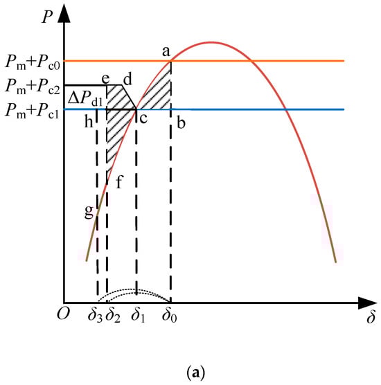 Based on the above conclusions, the principle of using emergency power support from healthy DC lines to improve power angle stability under DC blocking faults is analyzed using the changes in acceleration and deceleration areas of the equal-area criterion, as shown in Figure 1.