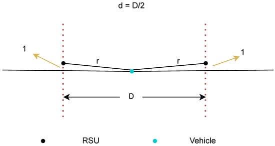 - Vehicle-to-RSUThe Type IIA unit on the vehicle V drives the corresponding Type I unit on V to interact with an RSU nearly as shown in Figure 3. It features direct communication between the Type I unit and the RSU without involving any intermediary.