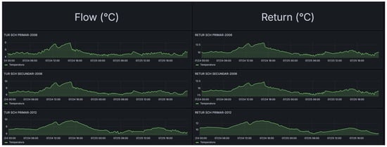 Specific testing was conducted during several months of data collection, preprocessing, and analysis to pursue the goals of accuracy, integrity, and reliability for the acquired information, as well as ensuring operational dashboards for the monitorization of the diverse data acquisition points. Data transmission integrity, consistency, and interoperability tests constituted a crucial step in obtaining the finalized solution, cross-checking and confirming timestamps and values collected from the various sources with the legacy systems’ sensor readings, and monitoring data streams to confirm no data points are missing.
