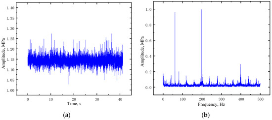 Figure 4 displays the time-domain waveform and frequency distribution of pressure noise collected from laboratory experiments. The noise frequency prominently exhibits two main frequencies, centered at 60 Hz and 200 Hz. To minimize the impact of noise, the signal generation frequency can be designed to be considerably lower than the noise frequencies. Additionally, a low-pass filter can be employed to mitigate the effects of noise.