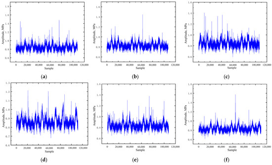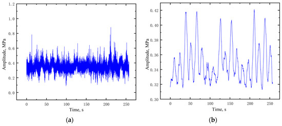 The primary advantage of EMD is its independence from pre-specified basis functions; rather, it adaptively decomposes the signal based on its intrinsic characteristics. The performance of the EMD signal filtering algorithm in processing the original signal is depicted in Figure 6. Compared to discrete random signal filtering algorithms, the EMD method is more effective in suppressing mud pump noise and can significantly identify the amplitude of valid pulse signals. Therefore, the EMD signal filtering algorithm will be used to remove signal noise in subsequent studies.