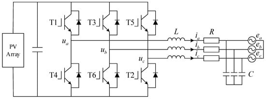 The PV grid-connected inverter is the main control device of the PV grid-connected system to realize sinusoidal current grid connection. The main circuit structure of the PV inverter is shown in Figure 2 [12].