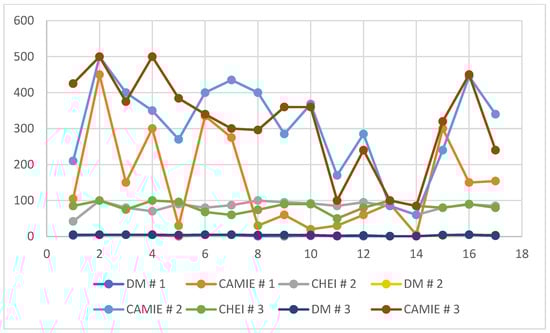 Figure 7 compares the results from DM and CAMIE indicators from all three participating CHEIs.