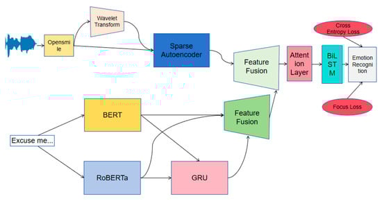 Future research should focus on the following directions: further optimizing the effect of speech and text feature extraction, such as exploring more efficient wavelet transform and sparse autoencoder structures; enhancing the model’s anti-jamming ability to noise; studying the combination and effect of different pre-trained models (such as BERT and RoBERTa) in text feature extraction; exploring more advanced sequence feature extraction methods, such as introducing more complex recurrent neural network structures or attention mechanisms; and optimizing multi-modal feature fusion strategies, perhaps considering more complex fusion models or attention mechanisms to better combine speech and text information. In order to improve the overall performance and robustness of emotion recognition, more effective loss function design or sample weighting strategies should be further studied to solve the problem of unbalanced samples.