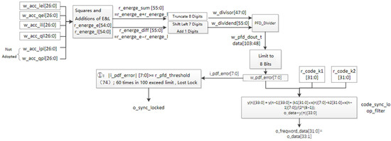 In order to solve the demodulation problem when the information symbol rate is not an integer multiple of the pseudo-code rate, the tracking module needs to introduce a third loop, named a bit synchronization loop, to achieve tracking and demodulation of signals containing large Doppler shift and pseudo-code asynchronous signals in satellite downlink signals [47,48]. In this scheme, the carrier loop uses the COSTAS loop, the pseudo-code loop uses the DDLL loop, and the bit synchronization loop uses the classic DTTL loop [56].