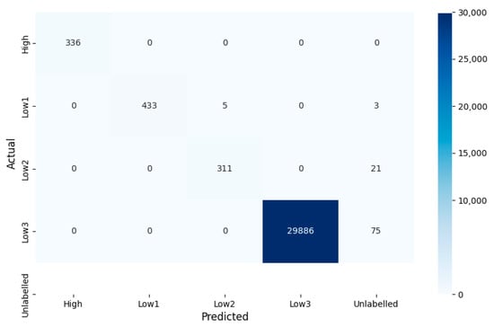 Considering that we are dealing with an extremely imbalanced dataset, although the impact of imbalanced datasets on our MSVMT model is not as significant as other classification models, we compute the confusion matrix to evaluate the classification performance rather than relying on the accuracy rate. The confusion matrix is shown in Figure 9.