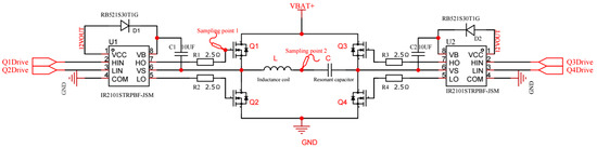 where VDR is the NMOS’s driving voltage, f is the inverter-side frequency, and Qg is the total gate charge of the NMOS. During the heating and temperature-holding periods, the driving losses of Q1 and Q4 are the same.