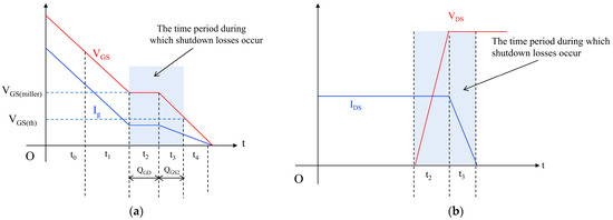 where f is the inverter-side frequency, and Uoff is the turn-off voltage, which is equal to the lithium battery supply voltage. Ioff is the turn-off current, which is calculated using Equation (21). toff is the turn-off loss time, consisting of two parts: t2 and t3, where