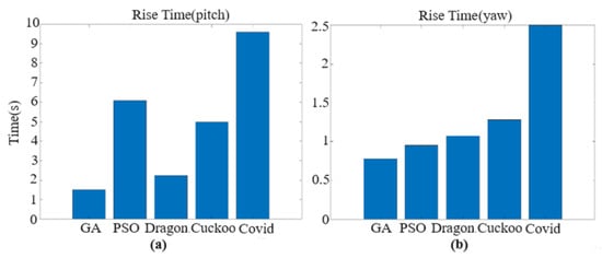 Bar graph of rise time: (a) pitch angle; (b) yaw angle.