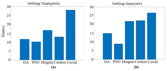 Bar graph of settling time: (a) pitch angle; (b) yaw angle.