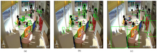 The objects to be detected in the nursery environment have complex characteristics. The objects exhibit significant variation in size, from large pieces of cabinets to small toys. Adding to this complexity is the phenomenon of occlusion, in which some objects are partially or completely obscured by other objects or people, which is quite common. For example, children engaged in play or larger objects present in the nursery environment can obscure toys. The altered appearance of the occlusion causes the perceived shapes of the occluded objects to vary. Consequently, objects in these settings will pose a challenge in terms of accurate detection, particularly when it comes to accurately detecting small objects.