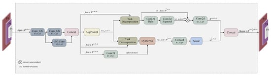 Here, and represent stacked convolutions, mapping features to a lower-dimensional feature space to enhance the model’s nonlinear expressive capability. represents ReLU, represents sigmoid, and N denotes the incoming feature list’s size, i.e., the number of input features. Interacting features inevitably introduce certain feature conflicts between two different tasks. Therefore, specific features for each classification or localization task are calculated separately, by multiplying their respective weights and interacting features , to obtain the decomposed features for each task: