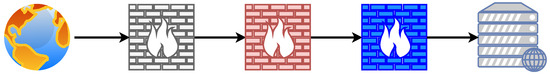 Oppliger [18] defines firewalls as “intermediate system[s] […] plugged between the network and the Internet to establish a controlled link, and to erect an outer security wall or perimeter. The aim of this perimeter is to protect the network from network-based threats and attacks, and to provide a single choke point where security and audit can be imposed”. The use of network firewalls lies in the idea of moving security away from a single host and the running applications to dedicated and more manageable entities. Such network firewalls can work on multiple protocol layers.