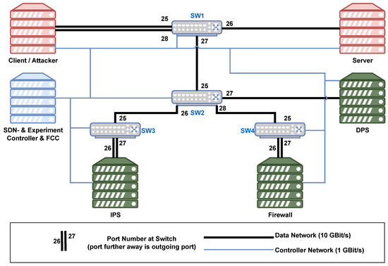 23. Shin, S.; Porras, P.A.; Yegneswaran, V.; Fong, M.W.; Gu, G.; Tyson, M. FRESCO: Modular Composable Security Services for Software-Defined Networks. In Proceedings of the NDSS. The Internet Society, San Diego, CA, USA, 24–27 February 2013; pp. 1–16. [Google Scholar]