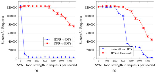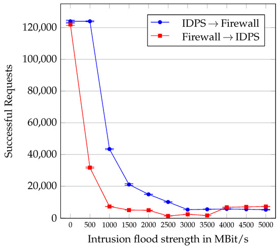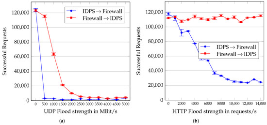 We perform measurements to prove our claim that the ordering is relevant during attacks. First, as an example firewall, we show IDPS, and DPS, which have significantly different performance characteristics, even for benign traffic, which mainly appear in the throughput they can handle. Under the specified attacks, we show that the performance of the service increases when using systems that protect against DoS attacks, while securing against software vulnerabilities even decreases performance. Furthermore, protecting against attacks that are irrelevant to the service can also hamper the overall performance. When putting the security functions in SSFCs of size two, we find that putting the defending function first always yields better throughput and, in most cases, also better latency and drop rate. This advantage can be up to three orders of magnitude.