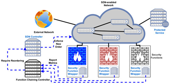 9. Iffländer, L.; Walter, J.; Eismann, S.; Kounev, S. The Vision of Self-aware Reordering of Security Network Function Chains. In Proceedings of the Companion of the 2018 ACM/SPEC International Conference on Performance Engineering—ICPE’18, Berlin, Germany, 9–13 April 2018. [Google Scholar] [CrossRef]