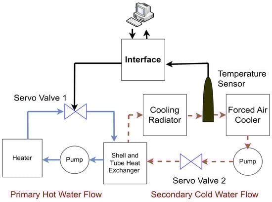 Diagrammatic representation of temperature control using a heat exchanger.