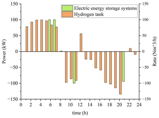 The energy storage facility of the hydrogen–electric coupled microgrid is a hydrogen storage system, characterized by the following energy storage and release attributes: