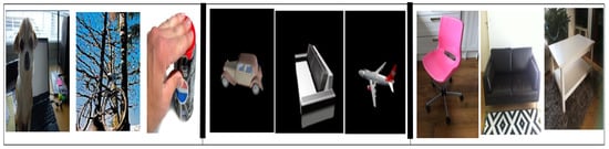 - Sun, X.; Wu, J.; Zhang, X.; Zhang, Z.; Zhang, C.; Xue, T.; Tenenbaum, J.B.; Freeman, W.T. Pix3D: Dataset and methods for single-image 3D shape modeling. In Proceedings of the IEEE Conference on Computer Vision and Pattern Recognition, Salt Lake City, UT, USA, 18–23 June 2018; pp. 2974–2983. [Google Scholar]