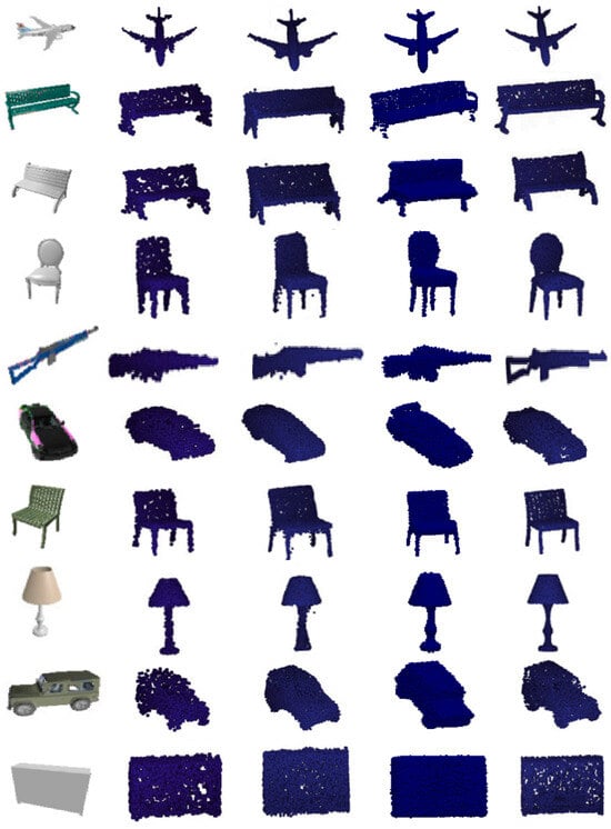 - Chang, A.X.; Funkhouser, T.; Guibas, L.; Hanrahan, P.; Huang, Q.; Li, Z.; Savarese, S.; Savva, M.; Song, S.; Su, H.; et al. Shapenet: An information-rich 3D model repository. arXiv 2015, arXiv:1512.03012. [Google Scholar]