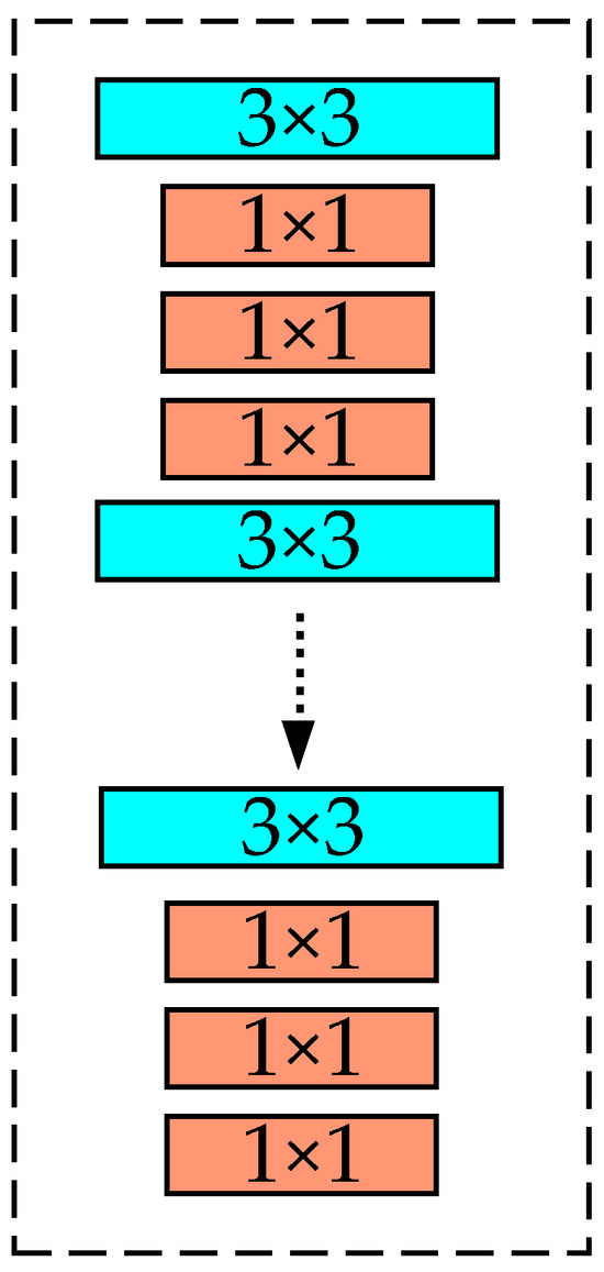 - Ding, X.; Zhang, X.; Ma, N.; Han, J.; Ding, G.; Sun, J. Repvgg: Making vgg-style convnets great again. In Proceedings of the IEEE/CVF Conference on Computer Vision and Pattern Recognition, Nashville, TN, USA, 20–25 June 2021; pp. 13733–13742. [Google Scholar]