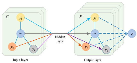 where I is the unit matrix, ; is the diagonal matrix, ; is the output value of the first layer; is the parameter value of the first layer; and is the activation function.